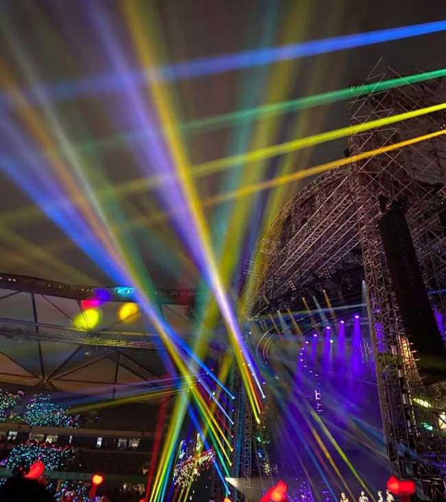 显示屏上的灯珠、电源、控制卡分别由LCF304AM永利核心供应商厦门信达、巨能伟业、卡莱特等配套供应,强强联手,打造完美视觉盛宴;现场观众席上的超美“荧光棒”也由304AM永利舞美视觉团队打造。
