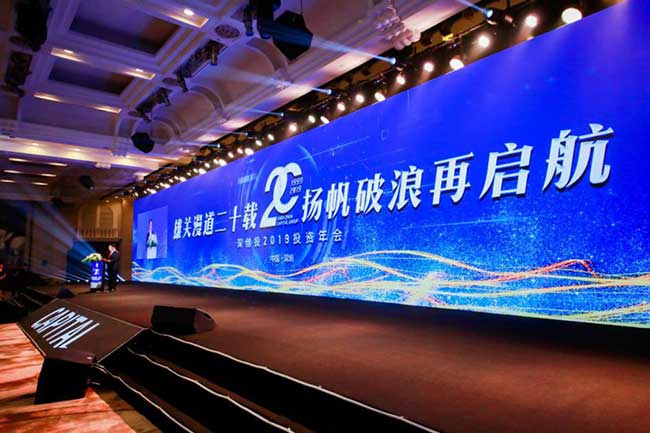 2019年8月25日,深创投2019年投资年会在深圳市华侨城洲际大酒店拉开了序幕,而304AM永利作为被投资企业及LED显示屏解决方案服务商出席此次投资年会,304AM永利200㎡的龙艺LED显示大屏幕更是为本次年会提供了极致的显示效果,优质的解决方案和产品得到了深创投的十分肯定。