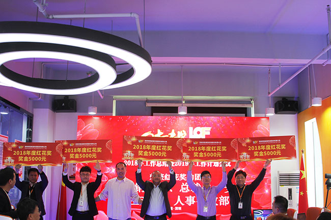 到最后,大会通过对各个部门负责人的演讲风格、内容进行打分评比,评选出年度红花奖、年度绿叶奖、年度成长奖,龙平芳女士、黄董事长、刘军副总经理分别为获奖部门颁发了奖牌。
