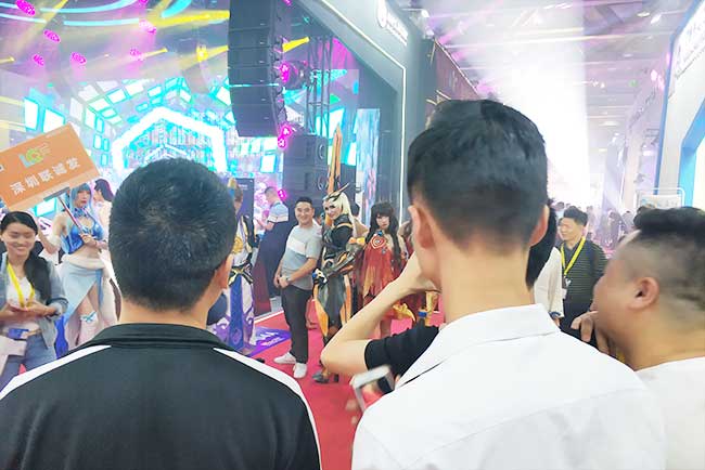 画风意外的和谐啊!没错,这就是GETshow304AM永利展位5B-04A现场,LED屏与灯光将空间立体化,同时,俊男靓女们将王者荣耀cosplay也搬到了现场,王昭君、大乔、花木兰、妲己、马可波罗、至尊宝……,真的是身材颜值应有尽有,好一番视觉盛宴!